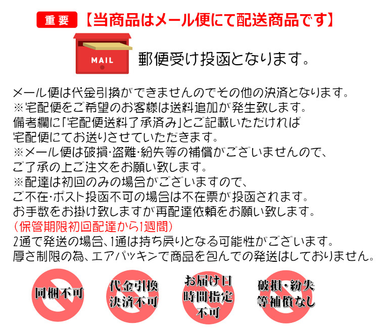 3個まで:メール便(代引・配達日時指定不可)